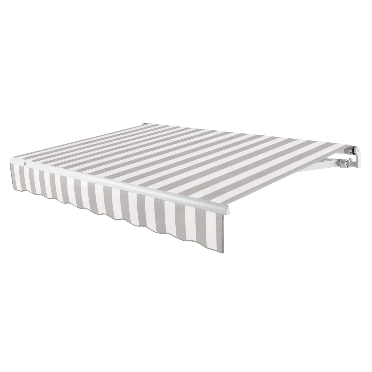 The Awntech Maui™ Awning offers a fully assembled, retractable solution, perfect for patios, storefronts, or stationary vehicles. Featuring a standard retractable design, it provides an open concept look, allowing customers to appreciate the fabric and operating components without additional encasement. Available in various standard, white powder-coated frame sizes ranging from 8 to 18 feet in width, it suits many commercial and residential settings. Crafted from 100% acrylic fabric, it boasts durability against UV rays, fading, and dirt accumulation, with easy replacement over time. Engineered for seamless fabric replacement, installation doesn't require professional assistance, accommodating both DIY enthusiasts and contractors. The awning arrives fully assembled and ready for installation, ensuring a hassle-free experience. With a minimum of two handy individuals, installation is straightforward, offering maximum convenience. Besides providing protection from UV rays, awnings enhance a building's aesthetic appeal, adding depth and character.