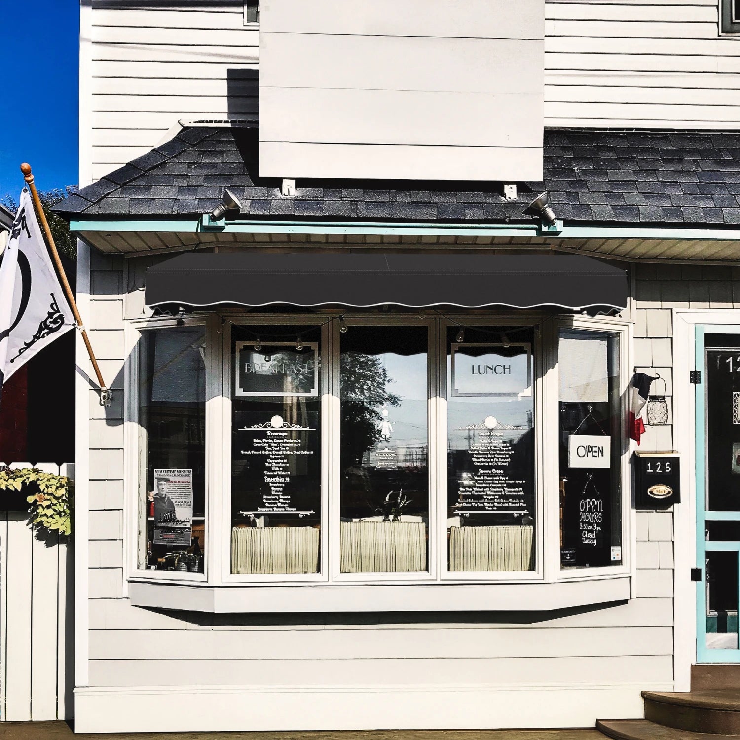The San Francisco 64.5" wide fabric awning features a sturdy sloped frame and rigid valance, perfect for adding clean, symmetric shade to homes or storefronts. Made with durable 100% acrylic fabric resistant to moisture, fading, and dirt, it’s easy to replace when needed. Modular design allows straightforward DIY installation, yet it’s built tough to withstand harsh weather. This awning not only protects from UV rays and rain but also enhances building style, complementing various architectural designs like modern, ranch, and art deco.