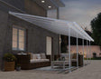 Protect yourself and your patio with the Feria patio cover. The UV-protected, clear polycarbonate roof panels shield against harsh rays while allowing sunlight through. The white powder-coated aluminum frame resists rust and matches any home color, and the adjustable frame fits various patio sizes.