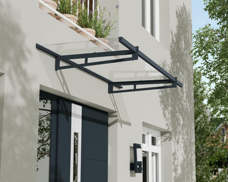 Enhance and protect your entryway with the beautiful Lily Door Awning. Featuring rust-resistant aluminum profiles and powder-coated galvanized steel brackets with ornate detailing, this door canopy combines elegance with durability. The clear panels provide reliable protection while requiring virtually no maintenance