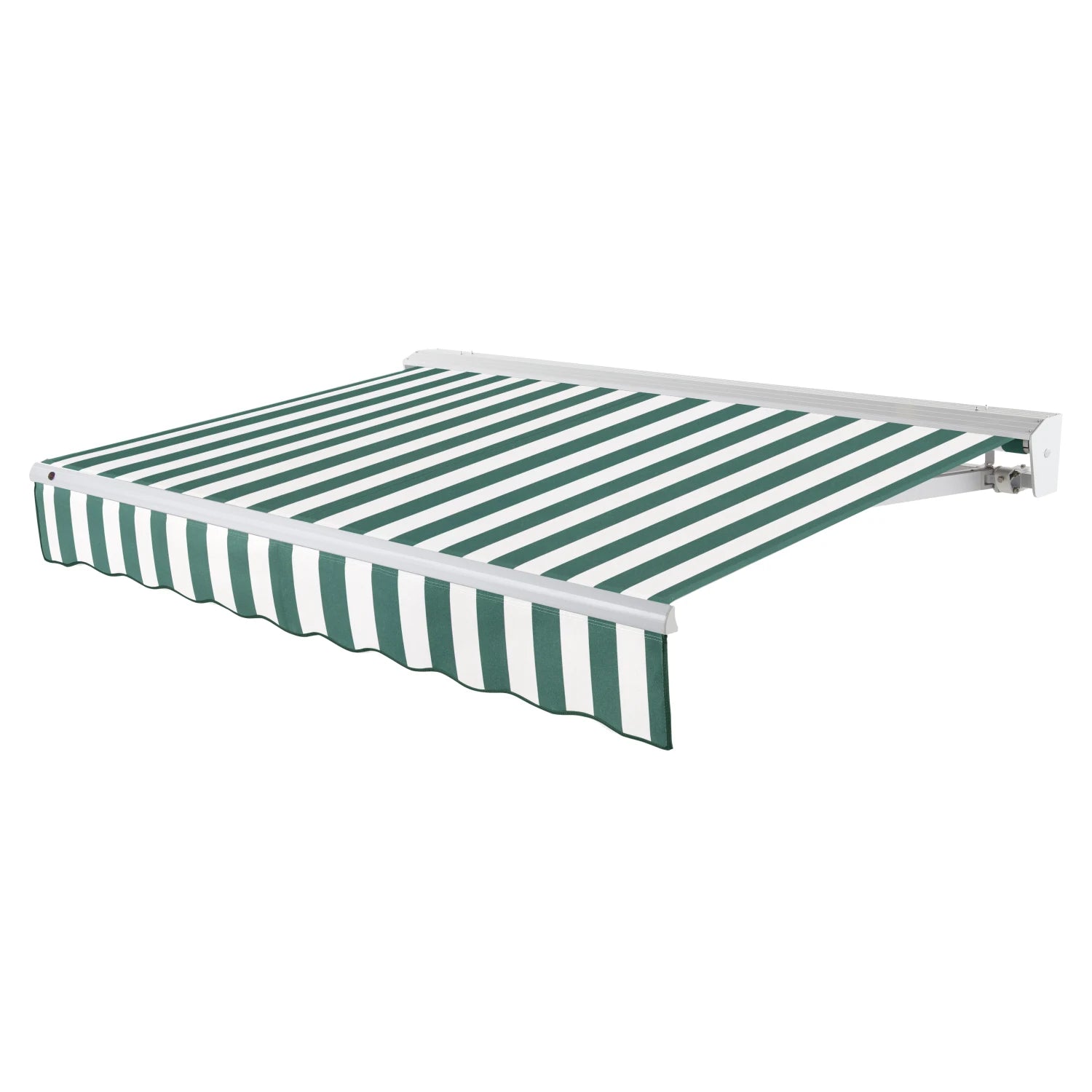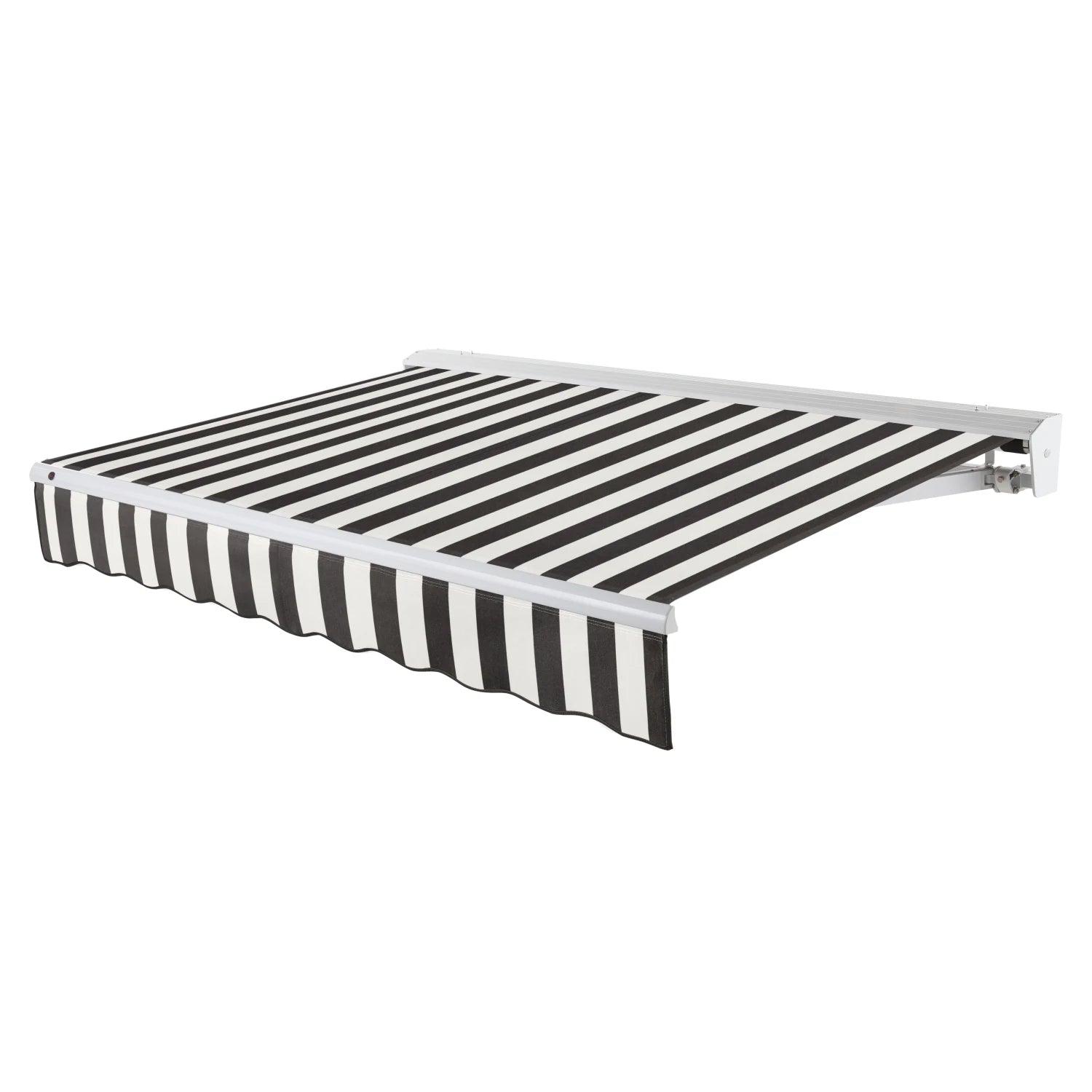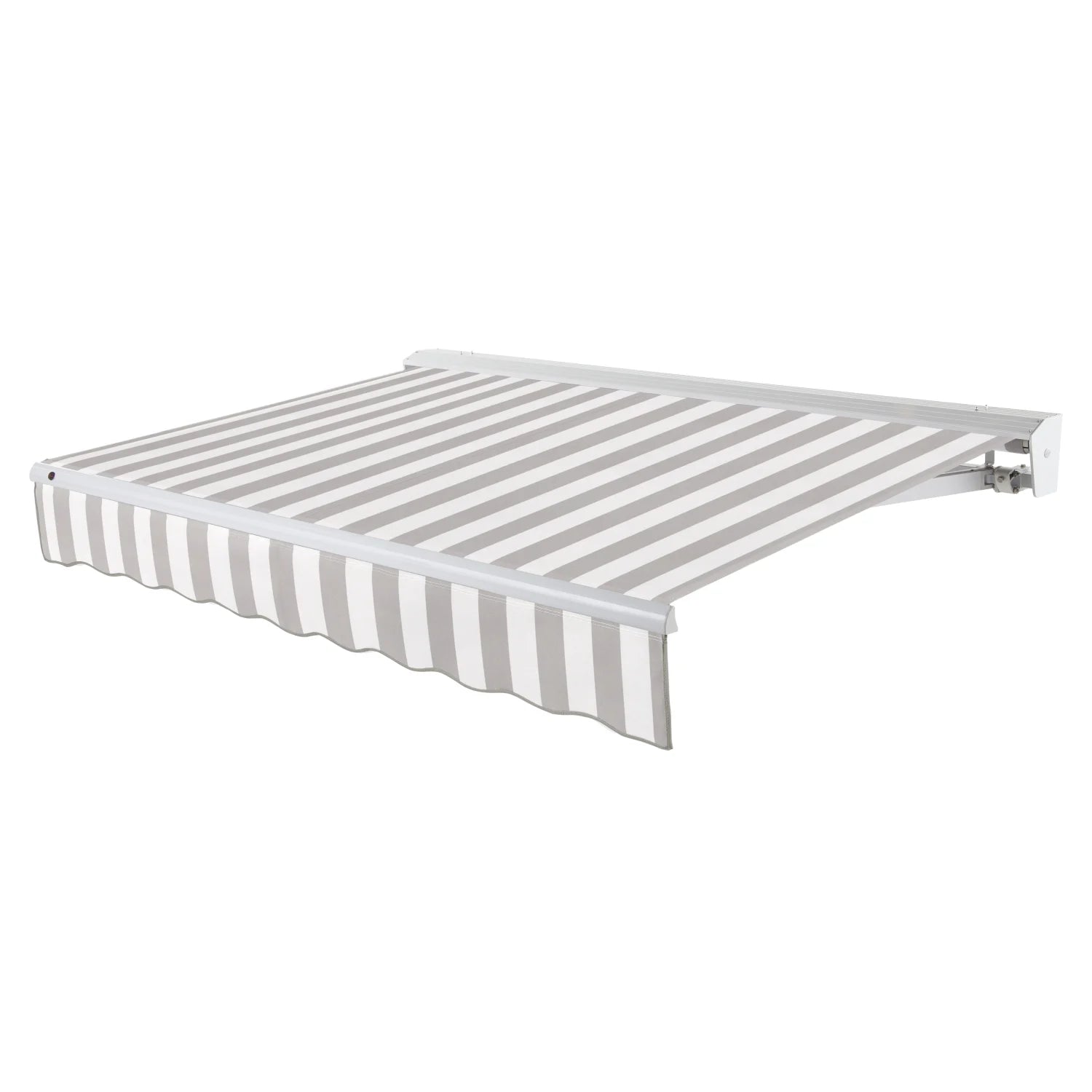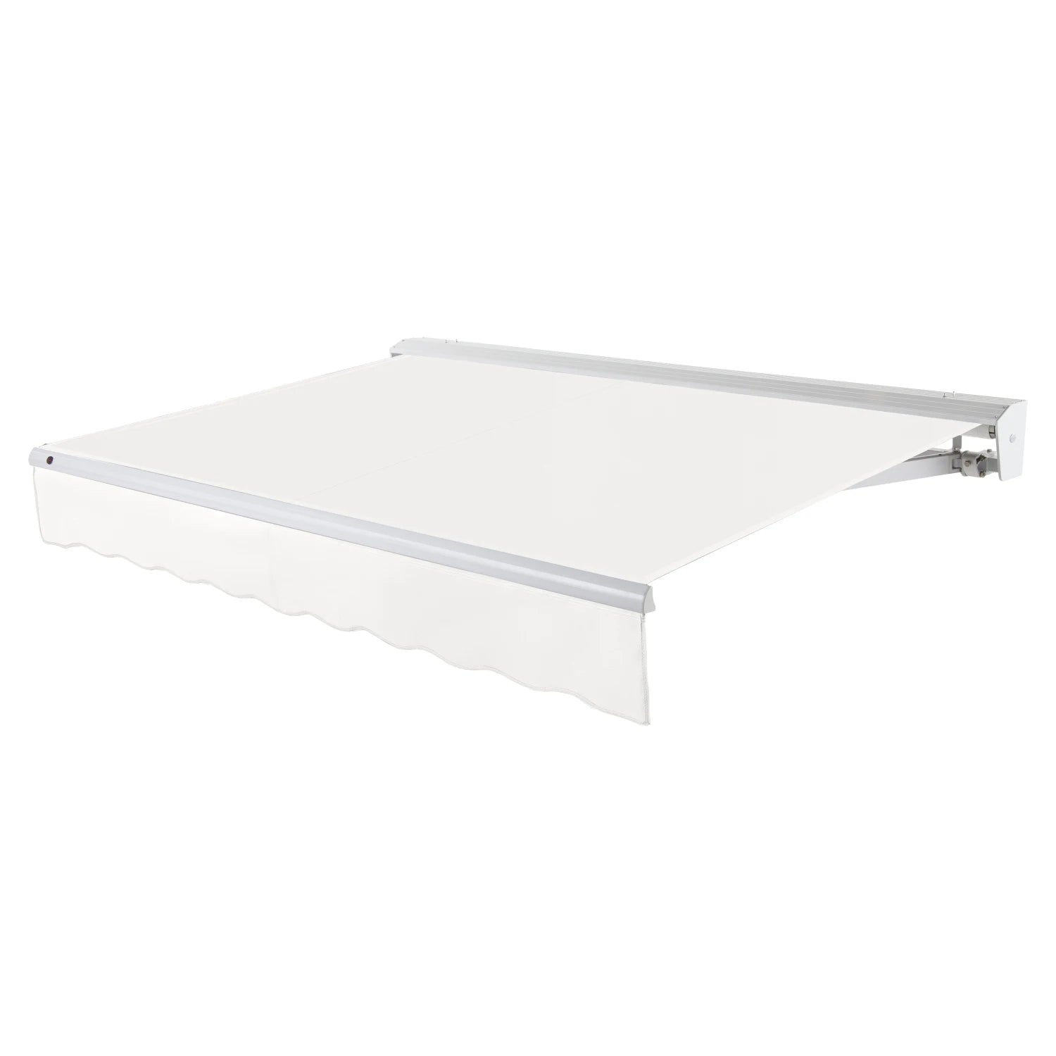 The Awntech Destin™ Awning offers a fully assembled, retractable solution, perfect for patios, storefronts, or stationary vehicles. Featuring a standard retractable design with a protective hood cover, it safeguards the sides and tops of the awning, serving as an alternative to a traditional soffit or overhang. Available in various standard, white powder-coated frame sizes ranging from 8 to 18 feet in width, it suits many commercial and residential settings. Crafted from 100% acrylic fabric, it boasts durability against UV rays, fading, and dirt accumulation, with easy replacement over time. Engineered for seamless fabric replacement, installation doesn't require professional assistance, accommodating both DIY enthusiasts and contractors. The awning arrives fully assembled and ready for installation, ensuring a hassle-free experience. With a minimum of two handy individuals, installation is straightforward, offering maximum convenience. Besides providing protection from UV rays, awnings enhance a building's aesthetic appeal, adding depth and character.
