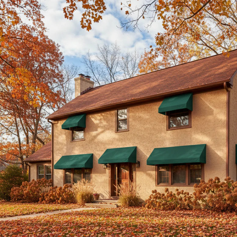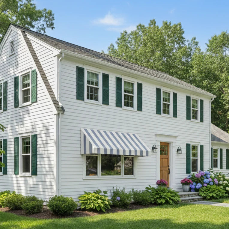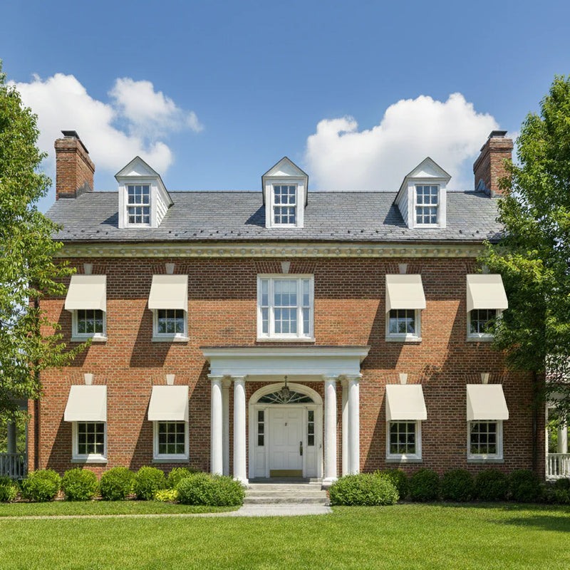 The Awntech New Yorker™ Awning is a great choice for those who are looking to have a symmetric and clean cut structure added to their home or store front. This model has a sloped frame and a rigid valance. Awntech offers a variety of standard, aluminum, mill finish frame sizes that fit the standard dimensions of many windows and doors. Sizes range from 3 feet to 10 feet widths but can be built up to 50 feet widths upon request. We offer 100% acrylic fabric, the recommended type of coated fibers for outdoor products. The fabric wears better as it has a natural resistant barrier to moisture, fading, and dirt. Another plus side is, overtime, the fabric cover can be replaced. All fixed models are designed to have a seamless modular assembly so that customers are not limited to hiring only a professional to assemble and install. This product is ideal for the Do-It-Yourself (DIY) customer but not limited to professional contractors or installers. Given that the design is modular, durablity comes into question for some. Awntech has a patent on the fixed awnings allowing the frames to withstand moderate to severe inclement weather. Not only do awnings protect you from harsh UV rays and unwanted water or debris, they also are a great way to add dimension to building!